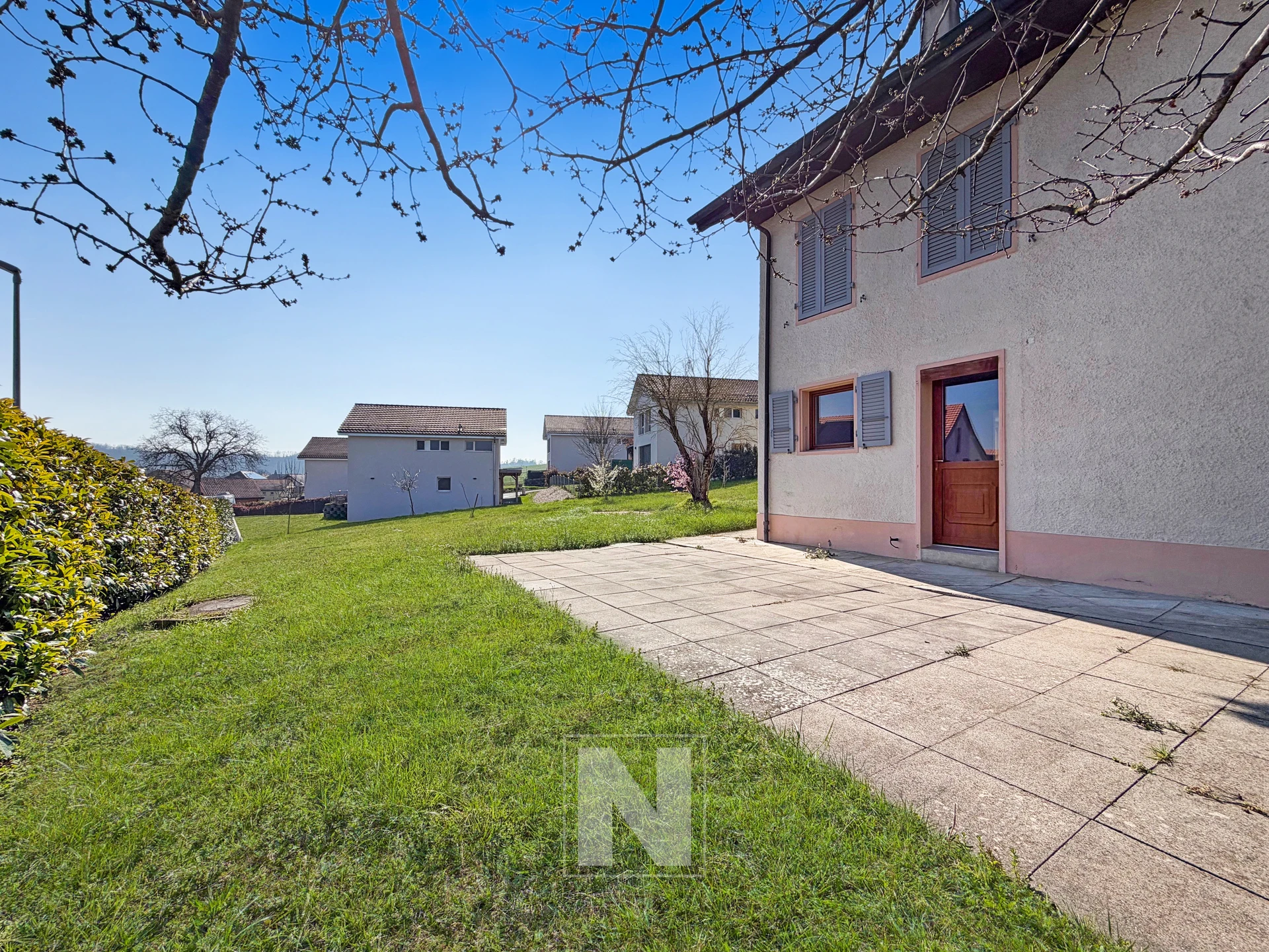 Implantée sur un terrain de plus de 1’200 m² en zone constructible, elle présente un réel potentiel : possibilité d’agrandir le salon en aménageant une partie du garage ou d’installer une piscine pour profiter pleinement de l’extérieur.